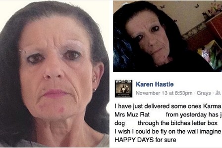 At 8.53pm on November 13, Karen Hastie, from Grays, put messages on Facebook stating she sent the gruesome package to deliver “someone’s karma” after Islamic State terrorists killed 129 people in the French capital.