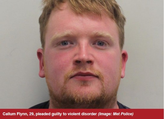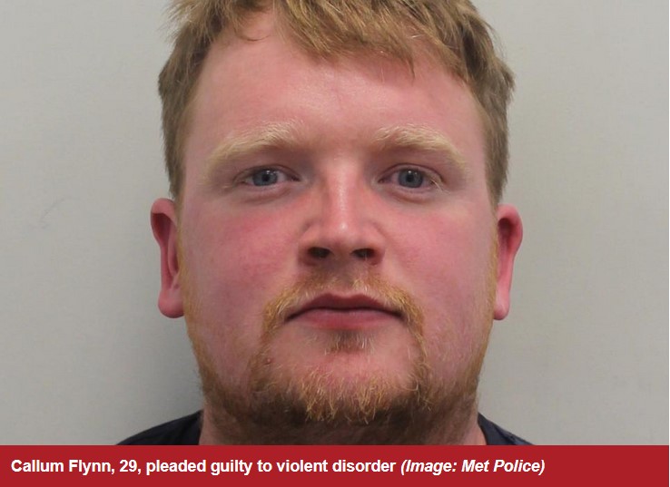 Callum Flynn, 29, of Belgravia Gardens, admitted using or threatening unlawful violence during a demonstration in Whitehall on July 31.
