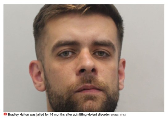 Halton was arrested on Sunday, August 11, and initially disputed his identification, telling police ‘Are you trying to wind me up?’ when he was confronted with the footage. He later admitted violent disorder in the magistrates court.