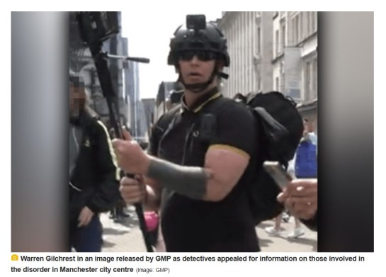 Wearing a black helmet with a mounted camera, Warren Gilchrest watched the chaos unfold from behind a pair of dark sunglasses. Holding aloft recording equipment, the 52-year-old was in the thick of the disorder in Manchester city centre on August 3.