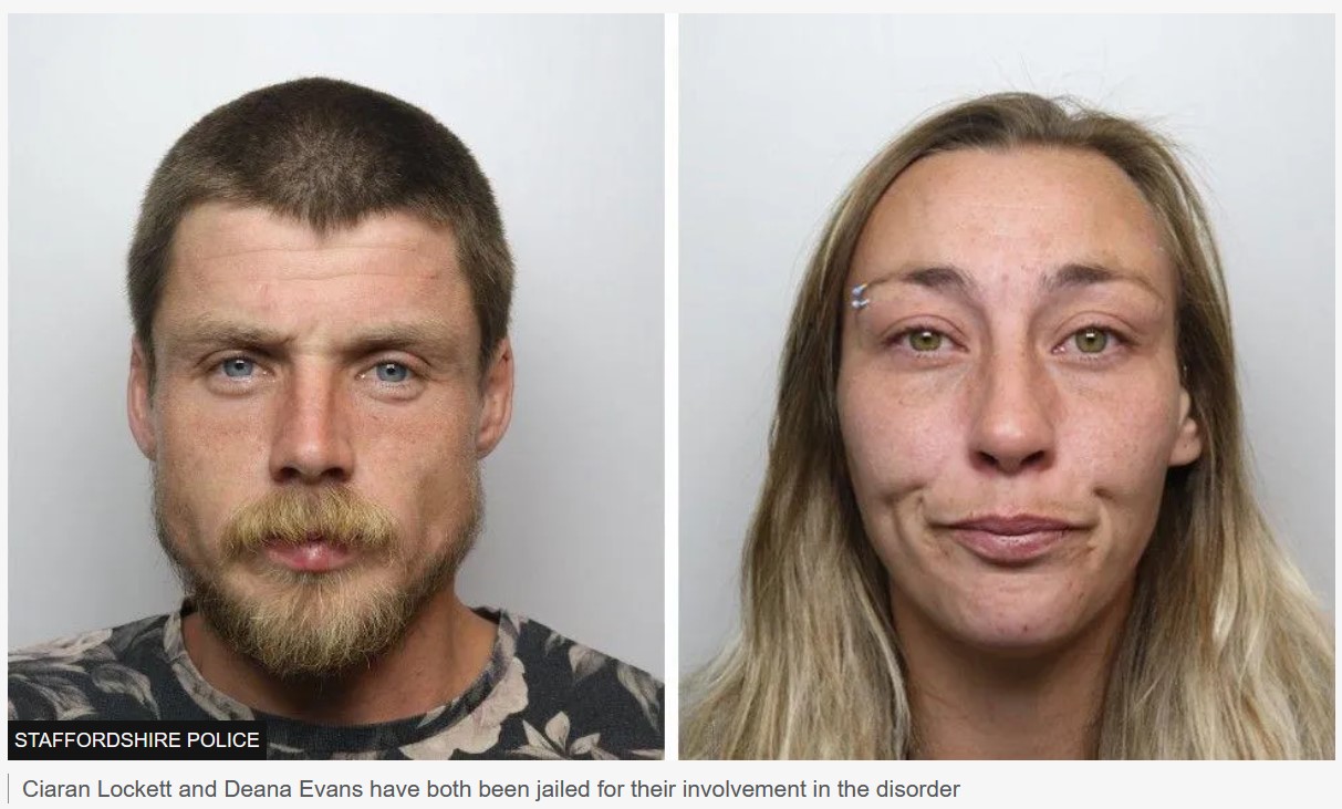 A man and his girlfriend have been jailed for their involvement in violent disorder that broke out in Stoke-on-Trent amid a wave of unrest in the UK.
