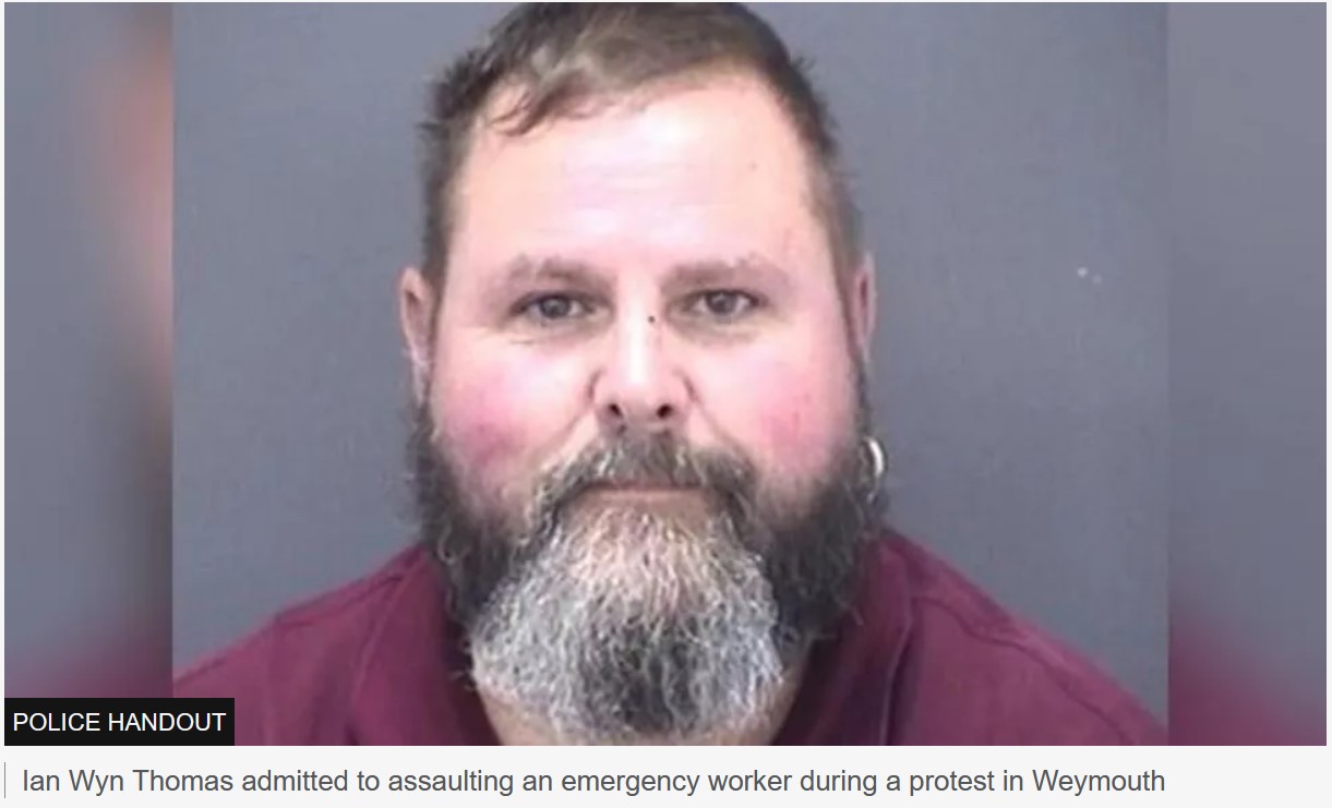 Ian Wyn Thomas, 47, of Elliott Road in Bournemouth, Dorset, attended the protest on The Esplanade in Weymouth on 4 August.
