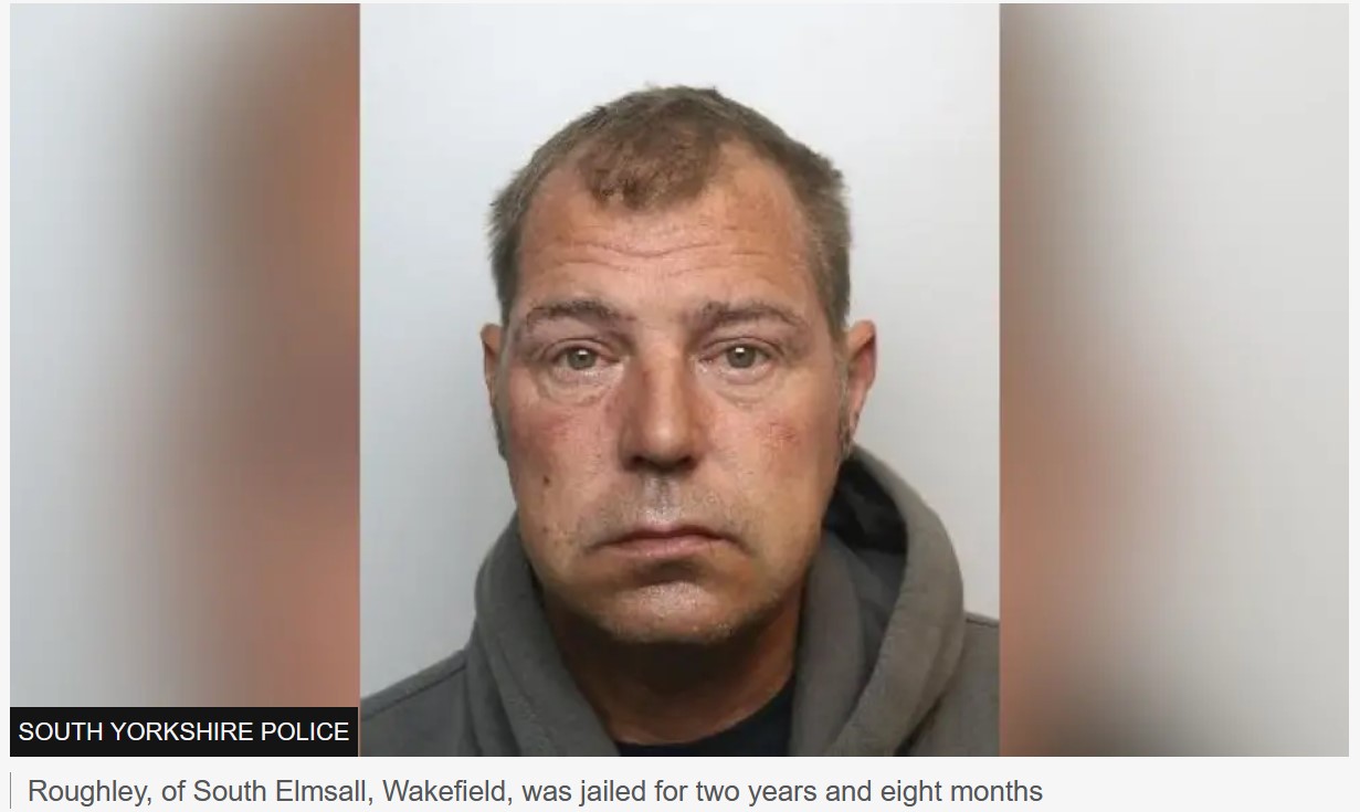 Roughley, of South Elmsall, Wakefield, was filmed throwing items at a police van and starting chants alongside his son, who was the first person to be jailed following the disorder.