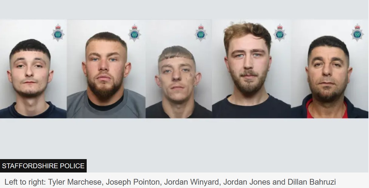 They included Jordan Jones, 27, of Meir; and Jordan Winyard, 28, of no fixed address.