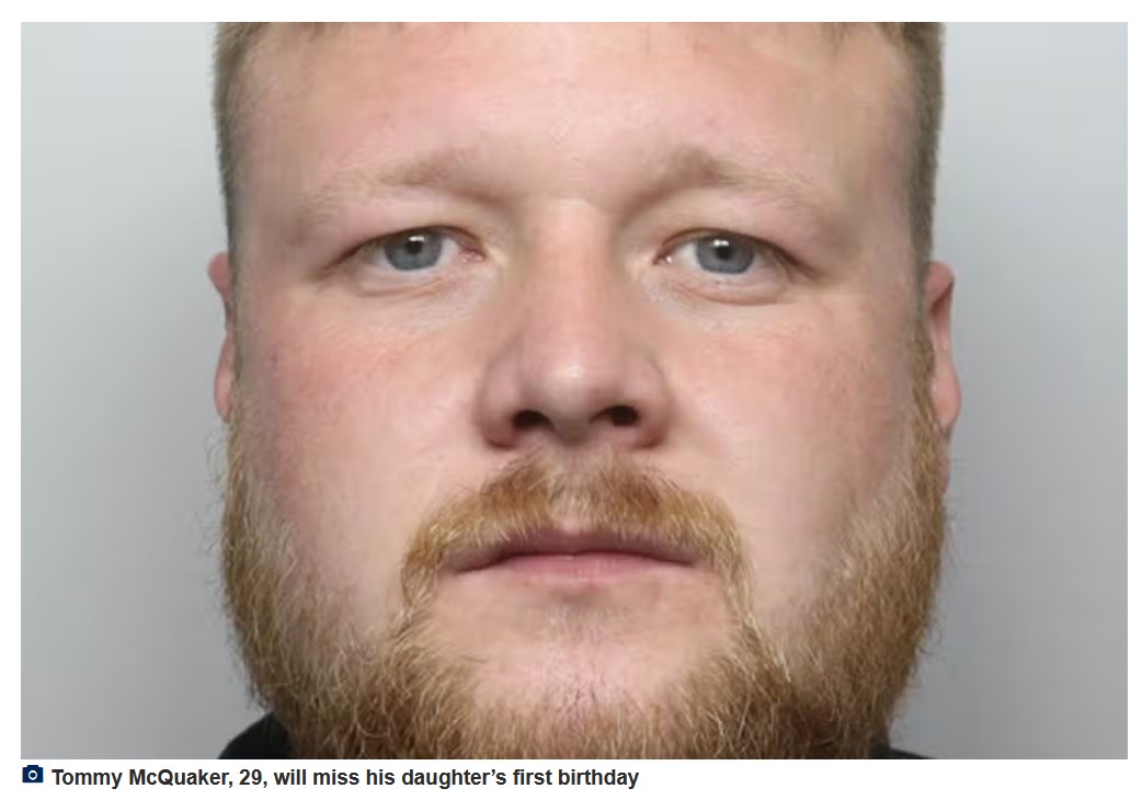 Tommy McQuaker, 29, will miss his daughter’s first birthday this weekend after he was ordered to serve at least 12 months in prison for his part in “extreme” disorder on August 4 outside Tamworth’s Holiday Inn Express hotel that arose in the aftermath of the Southport stabbings.