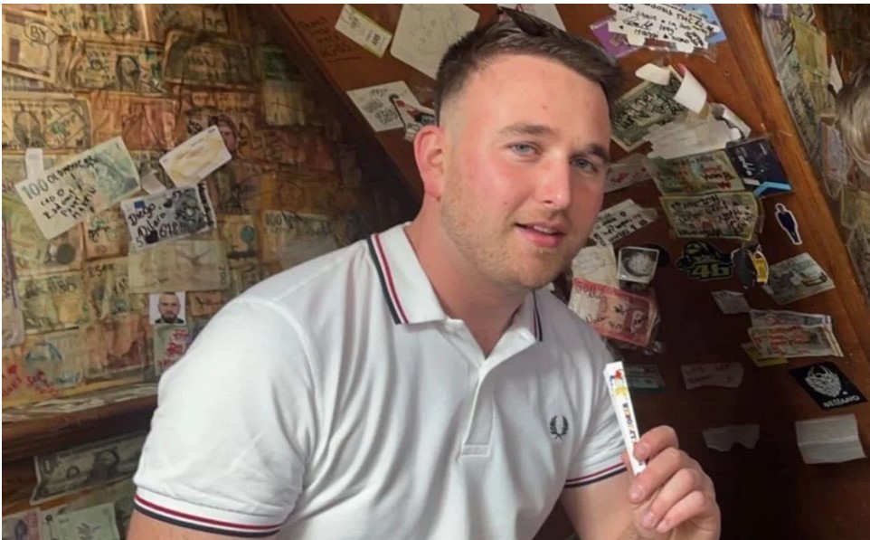 The 28-year-old was caught on CCTV and mobile phone footage shouting vile abuse at police officers as they struggled to maintain order when hundreds of people rampaged around the town.
