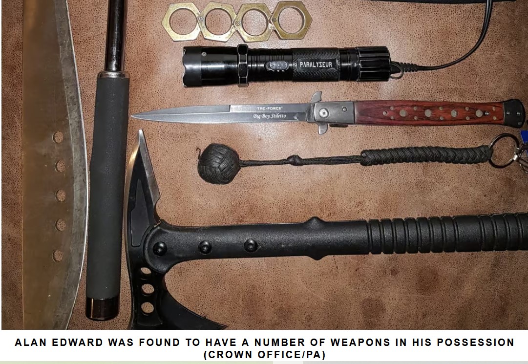 Edward was found guilty of possession of a cross-bow, machete, sword, knuckleduster, and arrowheads, which were said to give rise to “the suspicion that your possession was for the purpose in connection with the commission or preparation or instigation of an act of terror”.
