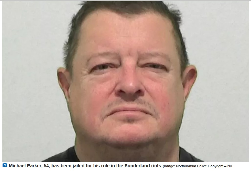 Michael Parker, 54, was caught on CCTV during the riot on August 2 last year approaching the police line and kicking out at officers. Newcastle Crown Court heard Parker had also been spotted gesturing towards officers and “goading” bystanders to join in.