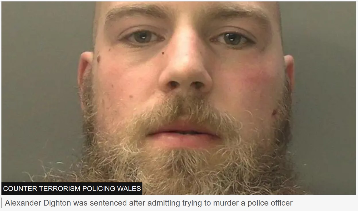 Alexander Dighton, 28 from Pontyclun, Rhondda Cynon Taf, was wearing body armour when he carried out the attack outside Talbot Green police station in January.