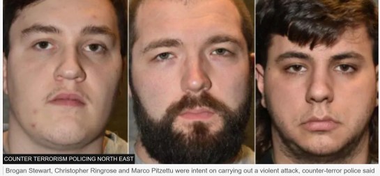 Christopher Ringrose, 34, Marco Pitzettu, 25, and Brogan Stewart, 25, were found guilty in May of planning terrorist attacks on mosques and synagogues.