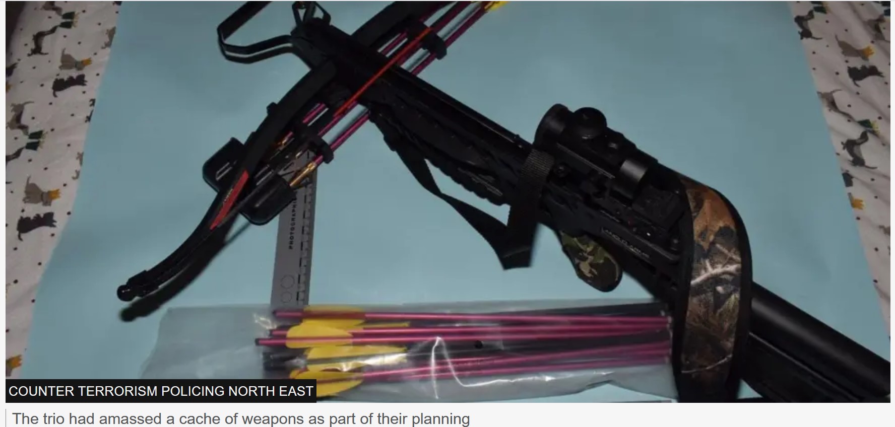 They were preparing to use more than 200 weapons they had amassed, including machetes, swords, crossbows and an illegal stun gun.