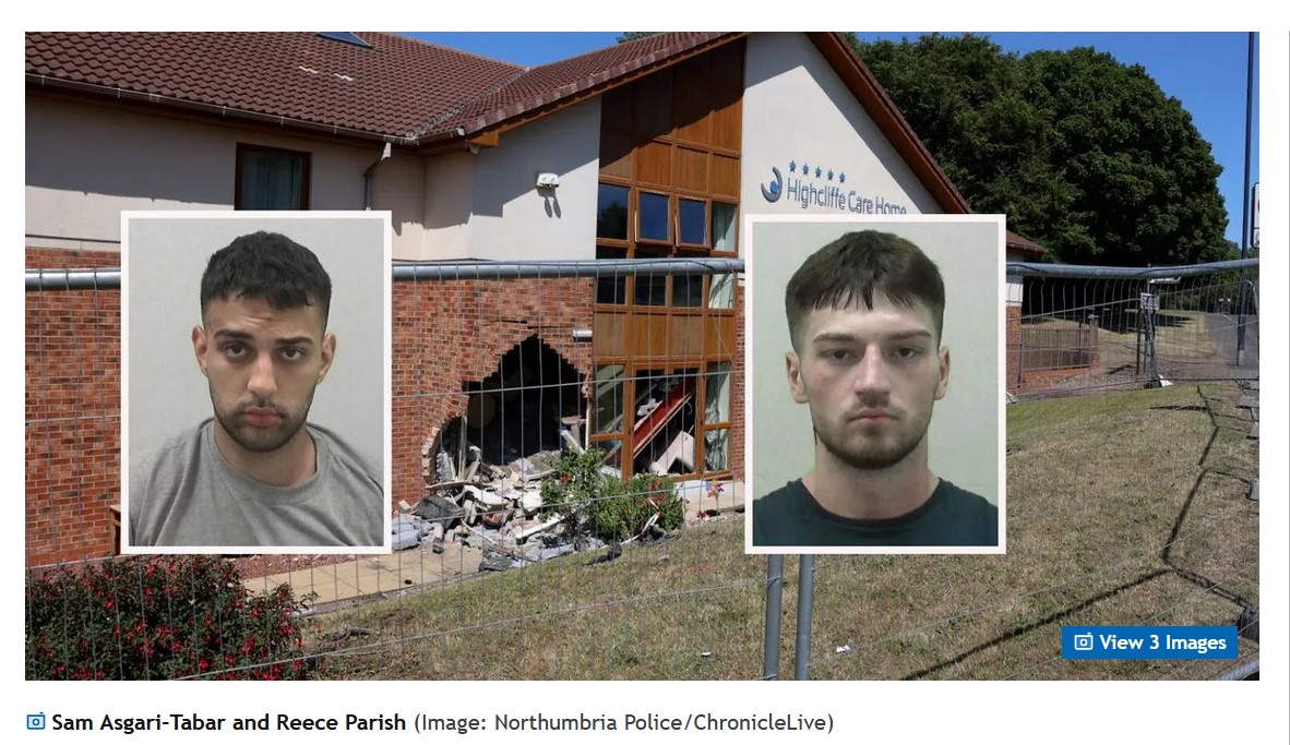 Asgari-Tabar, 21, of Stratford Avenue, Sunderland, who has 21 previous convictions, including for robbery and who was on a suspended sentence at the time for assaulting his parents and banned from driving for drug driving, and Parish, 21, of Fordham Road, Sunderland who has nine previous convictions, both admitted robbery of the car and Asgari-Tabar also admitted causing serious injury by dangerous driving. Parish also admitted violent disorder in relation to the riot in Sunderland on August 2 last year.