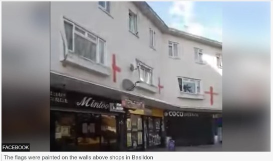 The crosses were painted above a convenience store, a pharmacy and food outlets including an Indian restaurant, a Chinese takeaway and a burger bar.