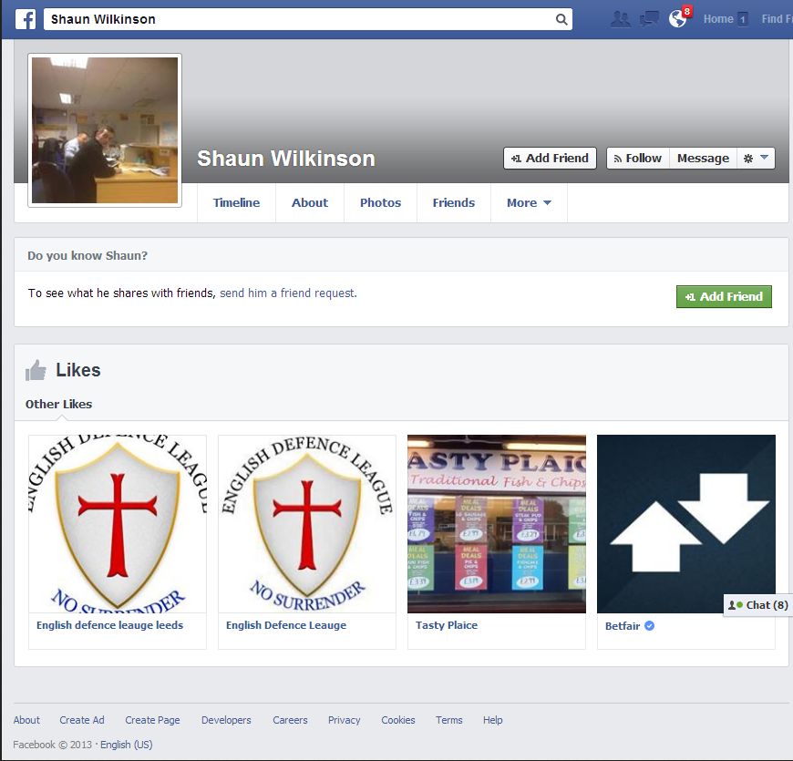 Shaun Wilkinson – EDL. Courtesy of Islamophobiawatch.co.uk