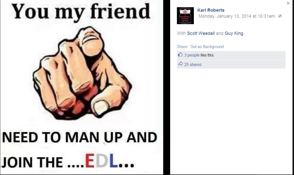 Thanks to EDL News for this picture of Kane on an EDL Demo