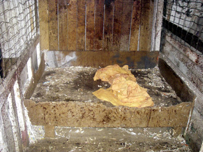 “Small amounts of shredded paper were being used for bedding, which was insufficient to provide comfort and there was no food or water available.
