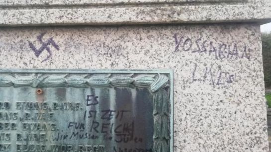 Bradley admitted criminal damage to the war memorial last February, including spraying a Swastika and Nazi slogans on it.