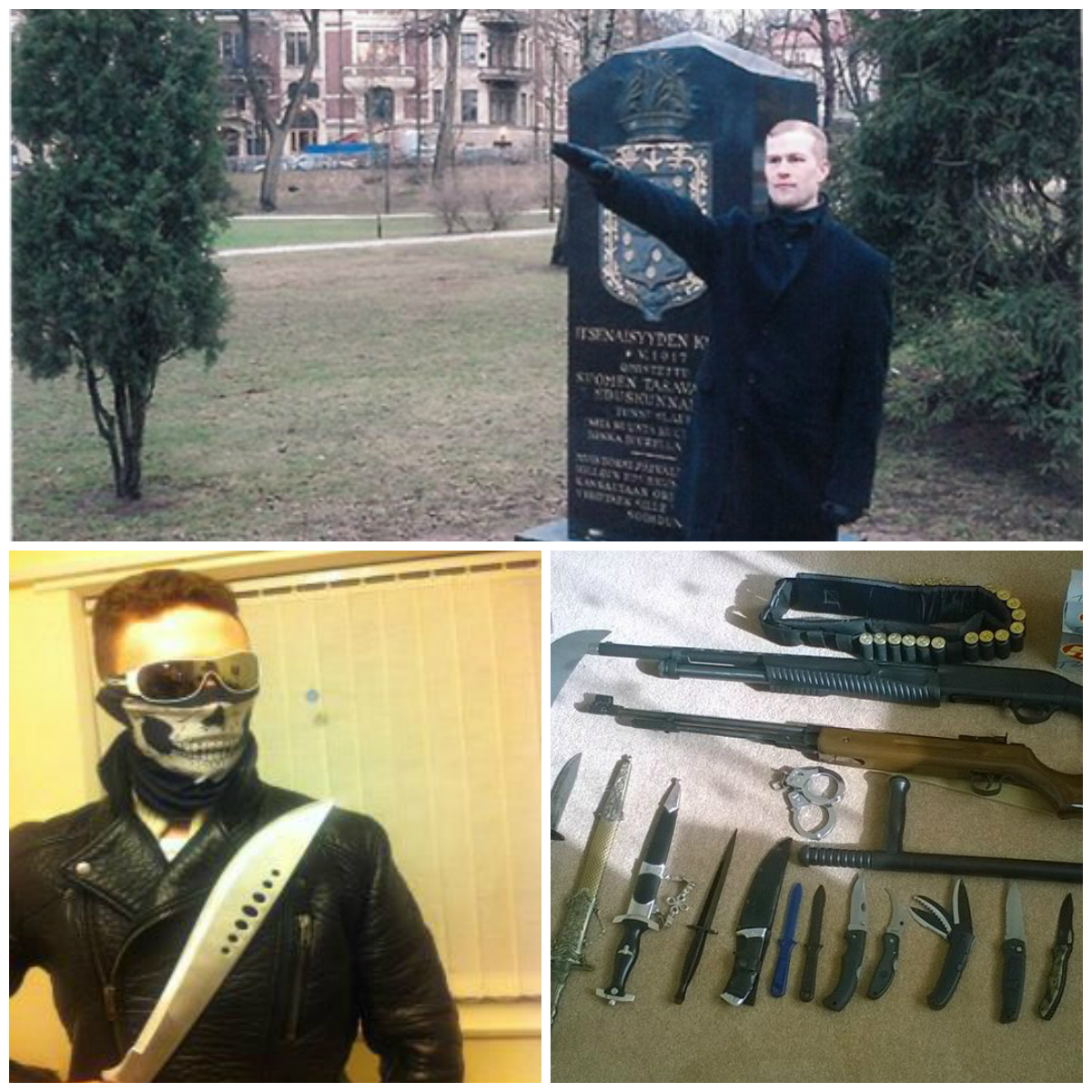 Top: Vehvilainen pictured performing Nazi salute Bottom left: Deakin and right: Vehvilainen's weaponry
