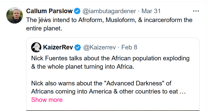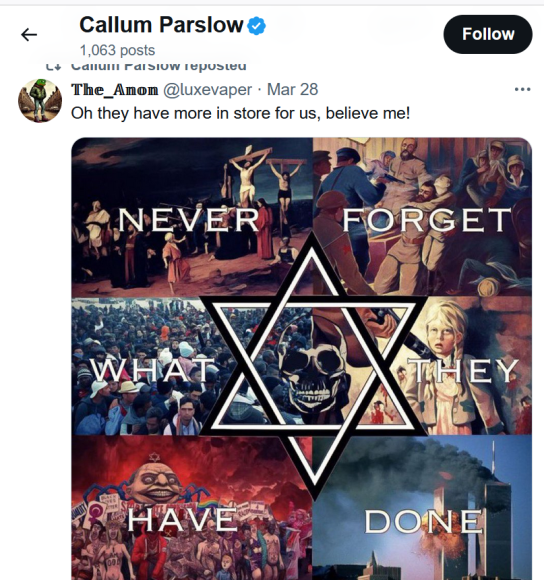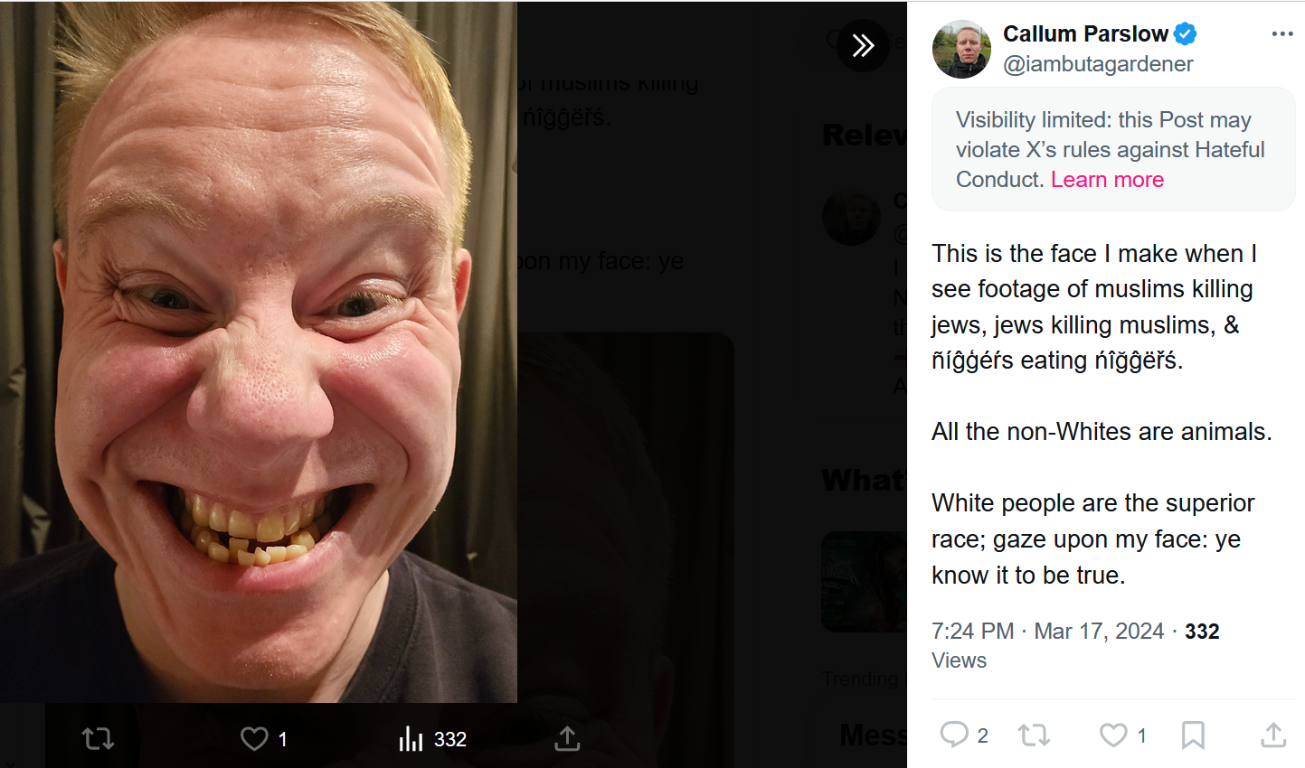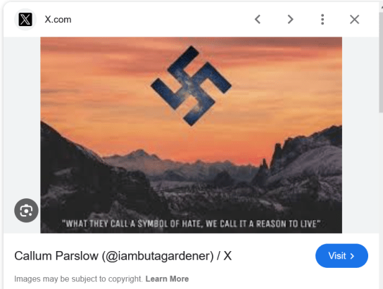 Callum Parslow attacked Nahom Hagos, who is from Eritrea, while he was eating at the Pear Tree Inn in April last year. The 32-year-old has Hitler’s signature tattooed on his arm and tried to post a “terrorist manifesto” on X.