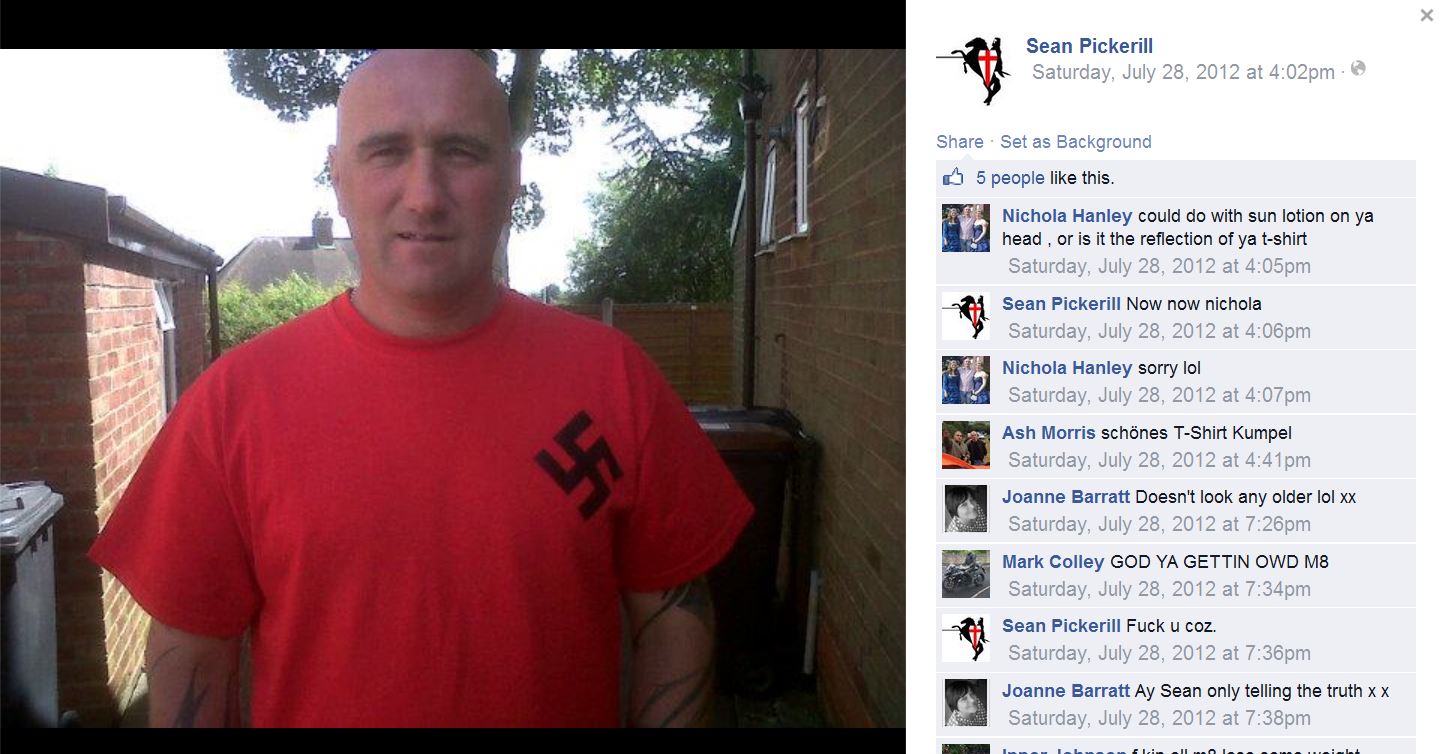 His home in Scott Close, Willows estate, Grimsby, was raided and far-right images of the Nazis, Adolf Hitler and the Ku Klux Klan were discovered.