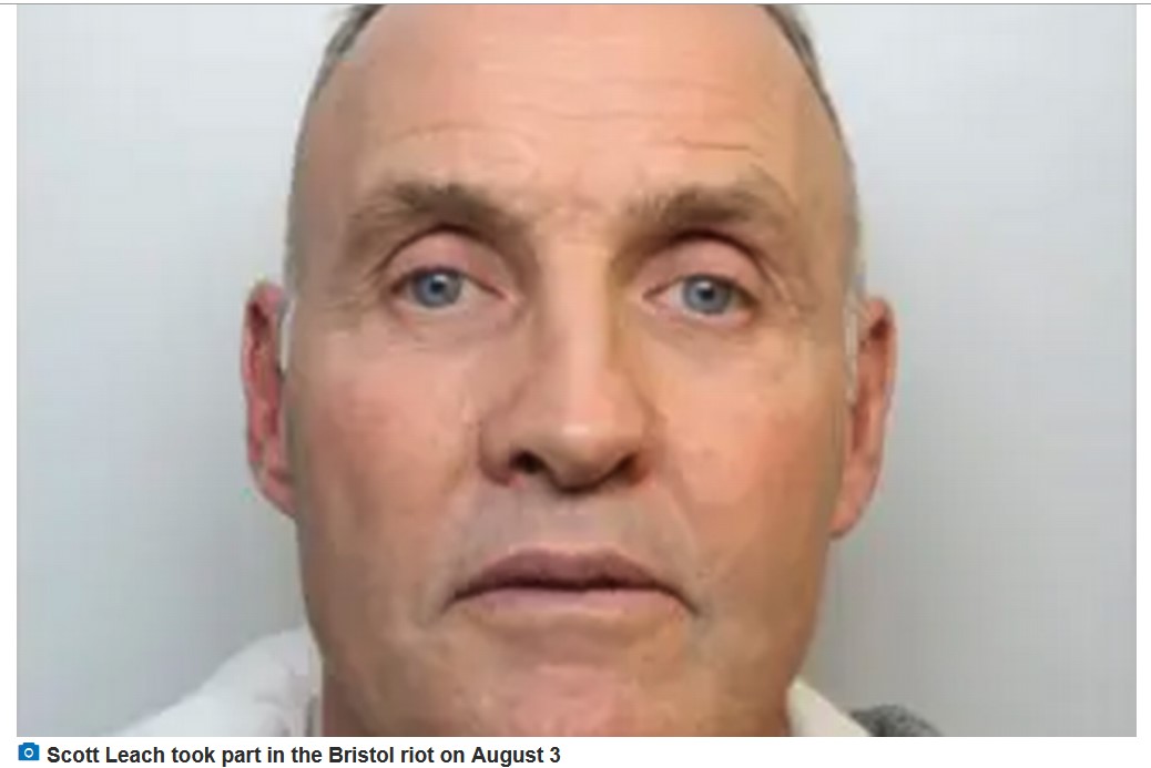 Scott Leach, 55, was verbally abusive towards police officers and pushed a member of the public off their bike on Saturday, August 3, when violent disorder broke out in the city.