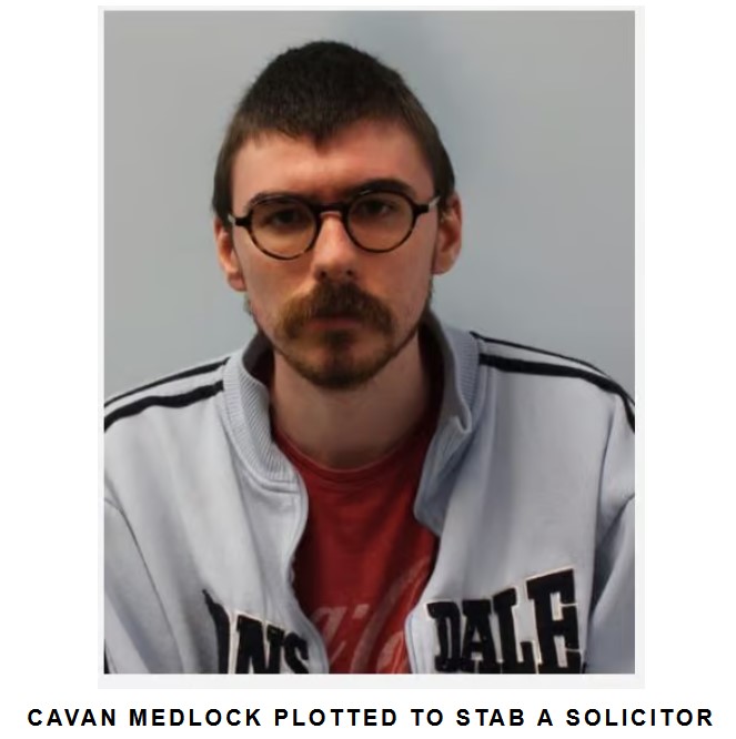 Cavan Medlock, 32, brought a six-inch hunting knife, handcuffs, and gaffer tape to the offices of Duncan Lewis solicitors in Harrow, northwest London on September 7, 2020.