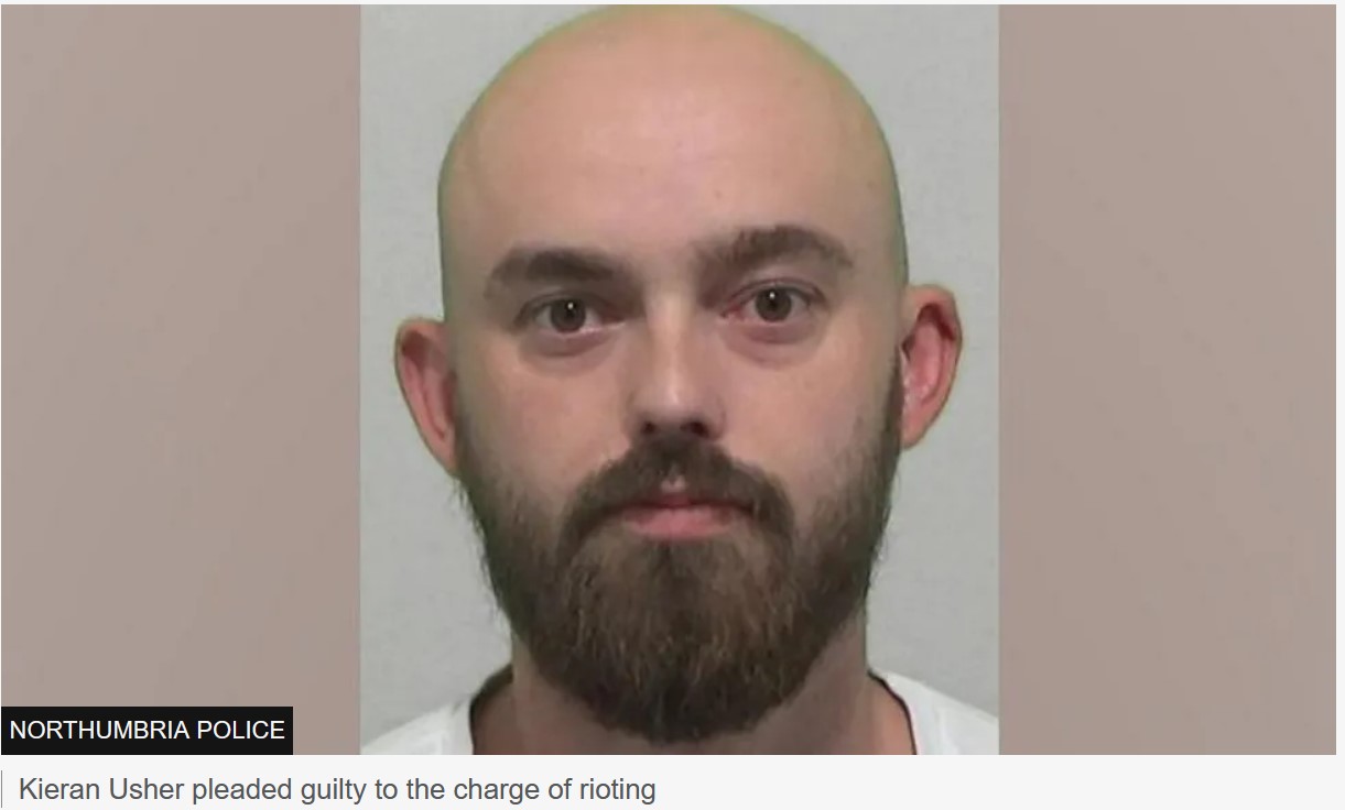 Kieran Usher, from Sunderland, became the first person in the country to be convicted of riot and was handed a four year and four month prison sentence.