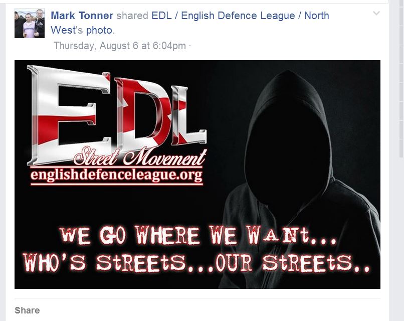 “He seemed really embarrassed and looked ashamed He normally comes across as cocky when he speaking for the EDL, so this was quite a difference,” he said.