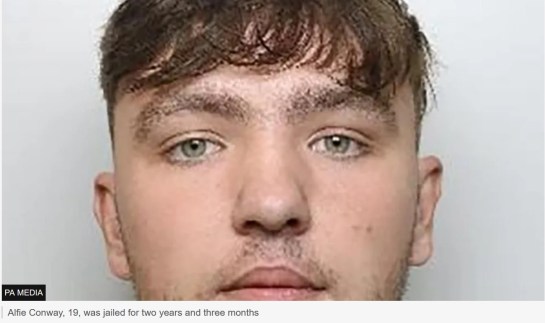 Apprentice bricklayer Alfie Conway, 19, from Pontefract, was jailed for two years and three months at Sheffield Crown Court.