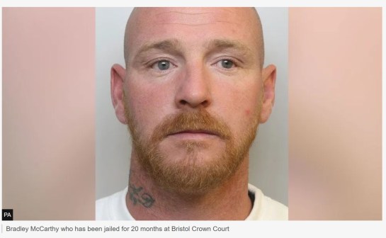 Bradley McCarthy was sentenced on Tuesday after he was caught on video “threatening” left-wing protesters at an anti-immigration rally in Bristol.