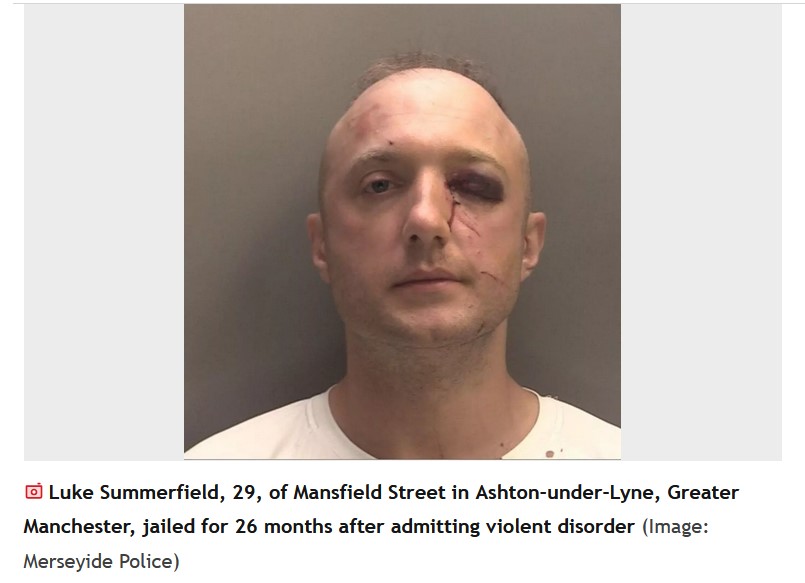 Self-employed joiner Paul Dryhurst, 33, of Gale Road in Litherland, was sentenced to two years for violent disorder after the court heard he was recognised on footage by a police officer who had gone to school with him.