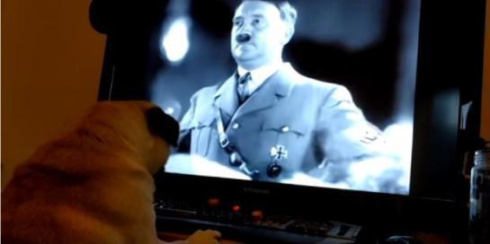 In the video the dog is seen perking up when it hears the statements and appears to lift its paw to the ‘Sieg Heil’ command in the video and is also filmed watching a rally led by Hitler at the 1936 Olympic Games in Berlin.