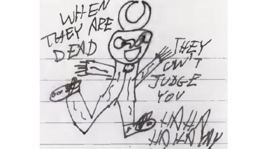 When he was arrested in March 2019, police found a piece of paper in his pocket containing a message in code that said: “Killing is probably easier than your paranoid mind thinks. You’re just not used to it.”