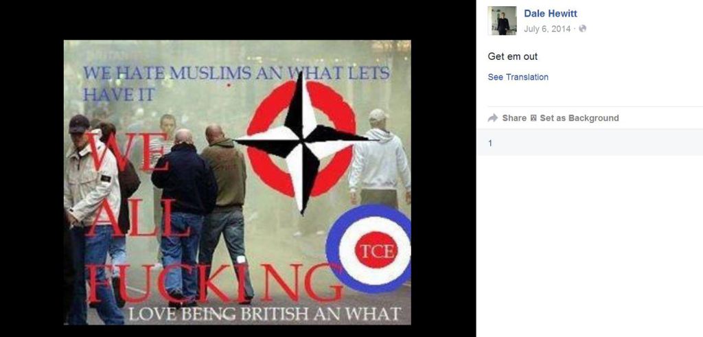 She said he was seen to jog on the spot as though attempting to charge the officers and towards the counter-protestors. He was seen cheering when objects – including a flare – were thrown at the counter-protesters and heard shouting “Green Army”.