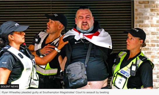 Ryan Wheatley, 40, was one of two men arrested in Southampton on Wednesday as he took part in an anti-immigration protest, which was outnumbered by up to 400 people who gathered and chanted “racists go home”.