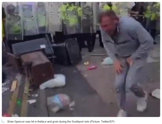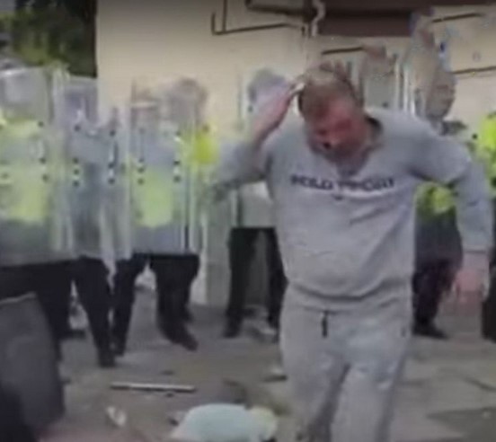 But as the father-of-four attempted to provoke a reaction, a large brick bounced off a riot shield into his face, while another hit the back of his head.