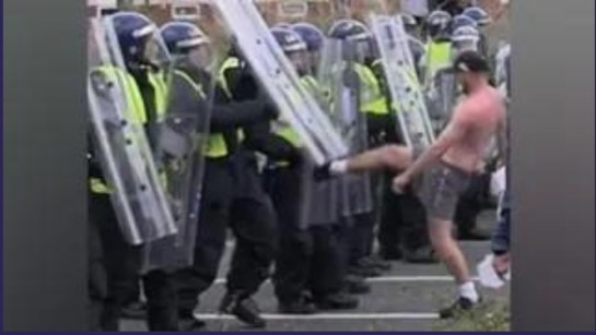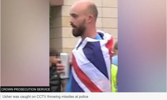 Masked at both events, he repeatedly threw missiles at police and hit their shields with a baton near the Cenotaph in Hartlepool, while encouraging others to join in, all the time draped in a cross of St George.