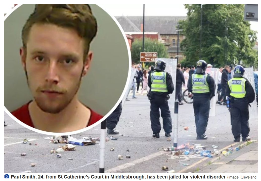 The judge passed a 22-month sentence on Wilkinson for the violent disorder in Hartlepool and added 50 months for the riot in Sunderland, to be served consecutively, totalling 72 months, or six years.