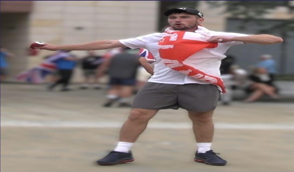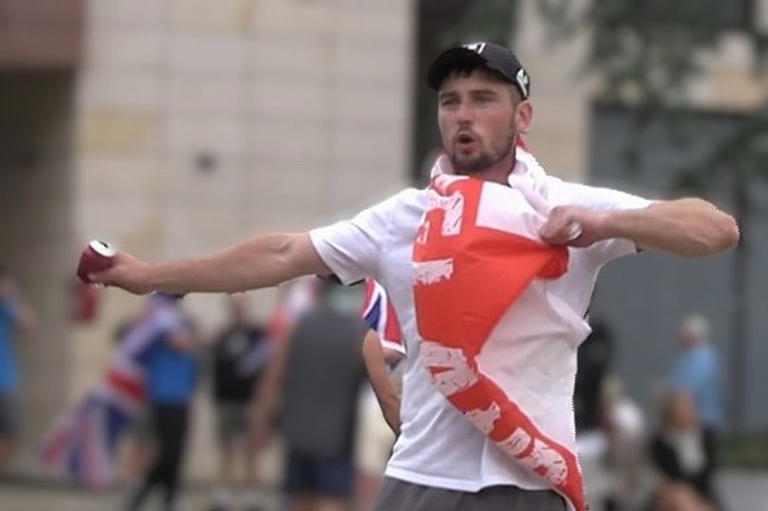 Masked at both events, he repeatedly threw missiles at police and hit their shields with a baton near the Cenotaph in Hartlepool, while encouraging others to join in, all the time draped in a cross of St George.