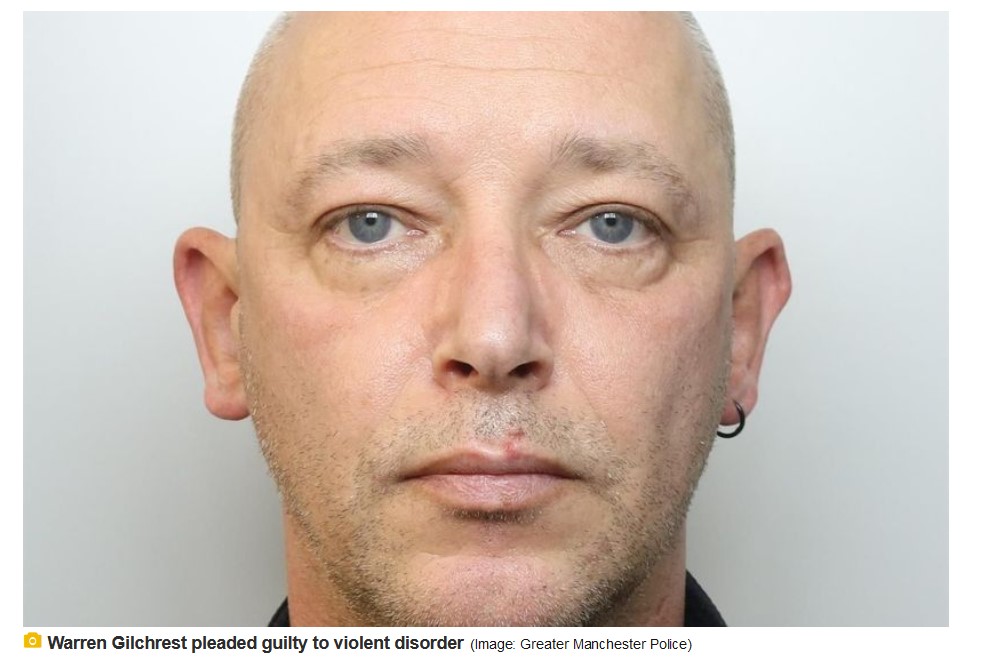 Gilchrest, 52, of North Road, Clayton, pleaded guilty to violent disorder in Piccadilly Gardens on August 3. Sentenced to three years in prison on August 21 at Manchester Crown Court.